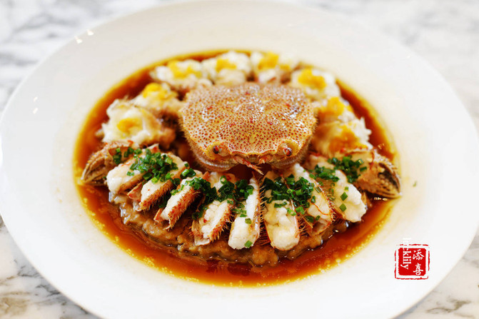 Con el pastel de carne como el fondo, la sopa de sopa de cangrejo de amarillo casera azuliza el cuerpo del cangrejo, el sabor del mar profundo que surge de la nariz salta a la mesa, la suave fragancia de la sopa de cangrejo de amarillo se inyecta en la carne de cangrejo, la dulzura de la carne de cangrejo se fusiona con la grasa del pastel de carne, chocando con otro tipo de interés.