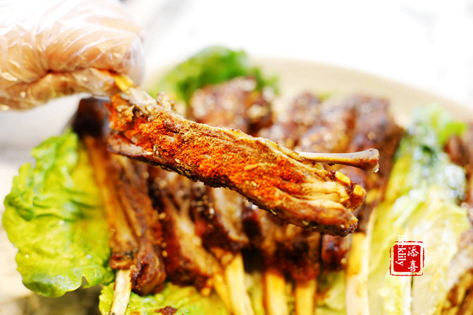 Seleccione filetes de cordero con buena carne, marinado con especias por adelantado, horneado hasta que el exterior sea crujiente y tierno, espolvoreado con un poco de comino, haga que el dedo índice mueva.