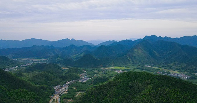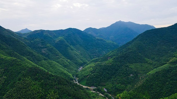 Mirando hacia abajo, hay un valle de bambú verde a sus pies, y en la distancia hay picos y montañas en cascada, hermosas montañas y ríos, que también es un paisaje maravilloso.