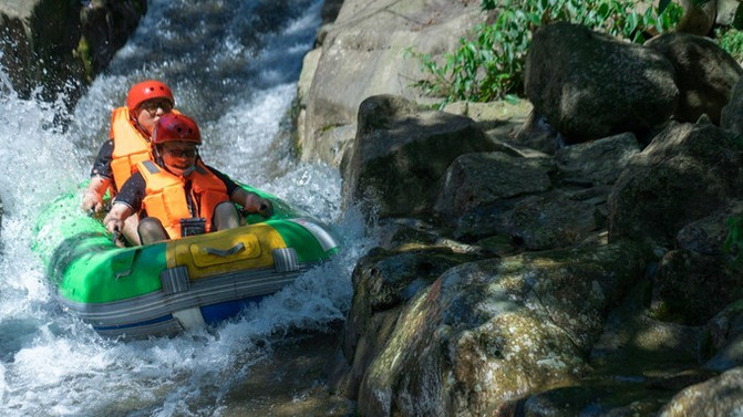 El punto de partida es un área de agua relativamente suave, pero cuando te sientas en la válvula inflable en el momento, la sensación de estimulación viene, cuando a lo largo de la corriente, provocará mil capas de agua, lo que viene es un grito, instantáneamente toda la persona está mojada por el arroyo, realmente 3 segundos en el agua puede experimentar la alegría de abrazarse con el agua, a lo largo de la vía fluvial muy rápido abajo, deslumbrando mil capas de olas, lo que viene es gritos y risas.