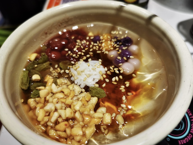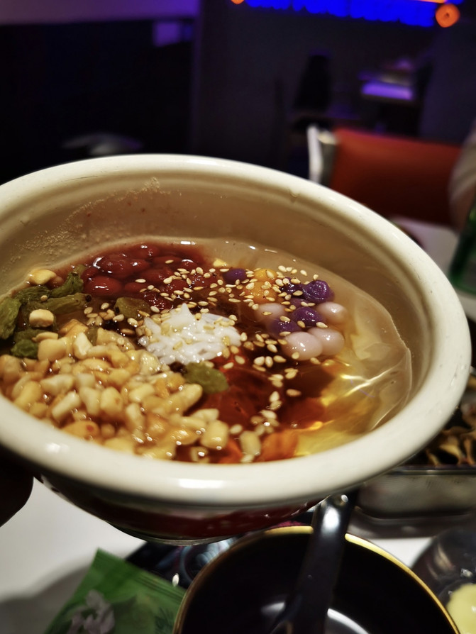 👏👏👏Hay muchas nueces en el interior, hay pasas, cacahuetes picados, nueces picadas, bolas blancas y púrpura, junto con hielo transparente y cristalino, que interpreta perfectamente el postre después de la comida.🥜🥜🥜💜💜💜