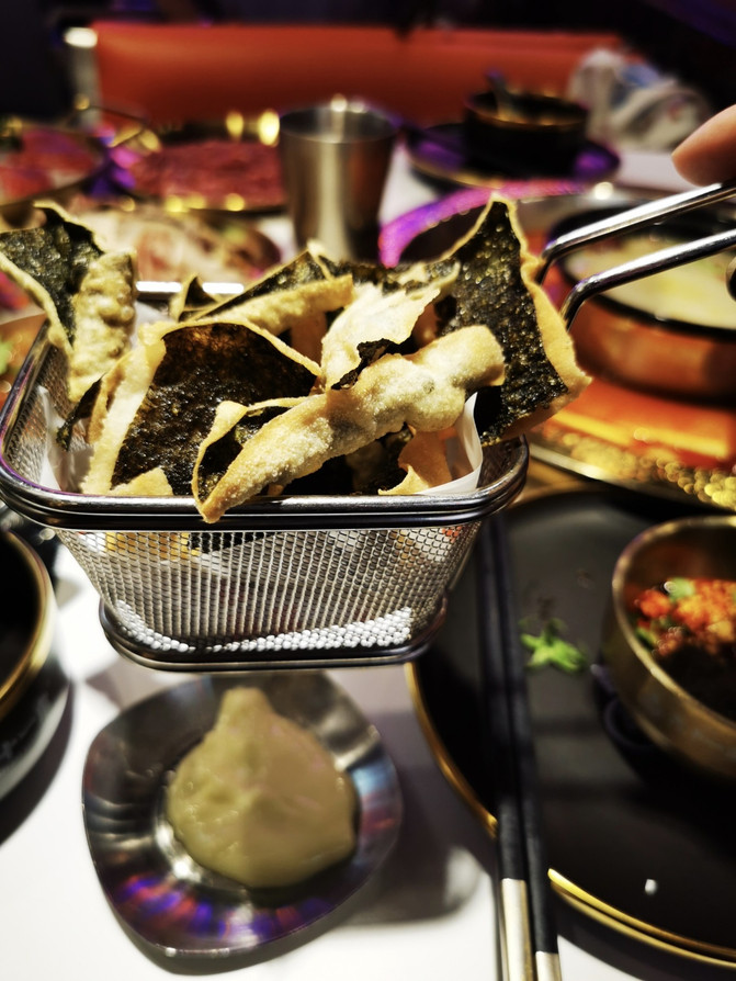 Es crujiente y delicioso, con una fragancia de algas marinas y una fragancia cálida de yemas de huevo.