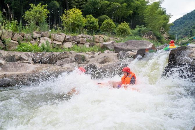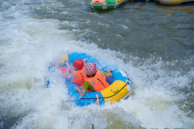 Cuando una hora y media de rafting, acompañada por la caída más alta trajo enormes olas de agua al final, todas las personas se reunieron aquí, pero no se fueron, sino que disfrutaron de la diversión de la batalla de agua en este agua verde, recuperaron la alegría fría de la infancia. En las manos de todos, hay accesorios preparados de antemano, algunas pistolas de agua, algunas balsas de agua, y otras personas también usan el casco para rociar agua, una mirada, una mirada hacia atrás, todo entiende, en un instante el agua brilla, gritos acompañados de una gran risa...