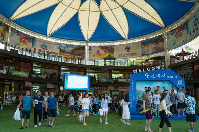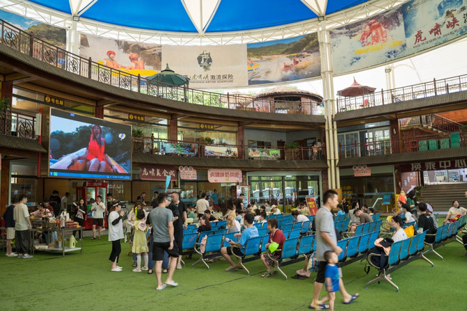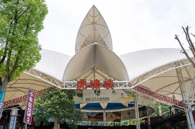 He ido a muchos rafting este año pasado, como un lugar escénico estacional, la mayoría de los centros turísticos son relativamente simples, y el centro turístico de Hu Xiaoxia, la majestuosa arquitectura frente a mí realmente me sorprendió, techo de gran estructura de acero, color de mosaico blanco y azul, desde la distancia también hay una ilusión de "Opera House", no solo puede protegerse del viento y la lluvia, sino también puede ventilar alrededor.