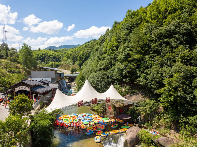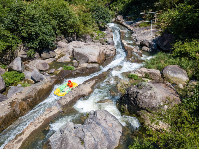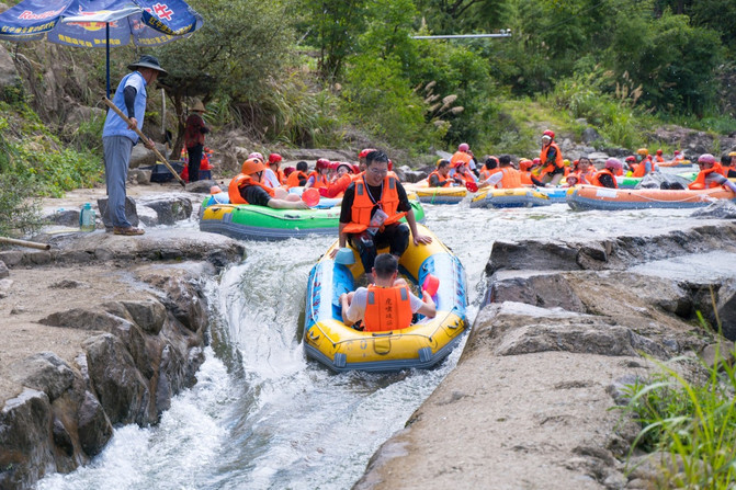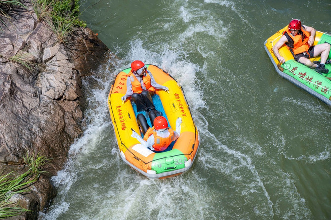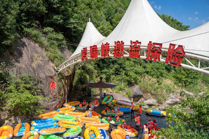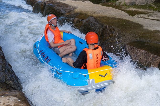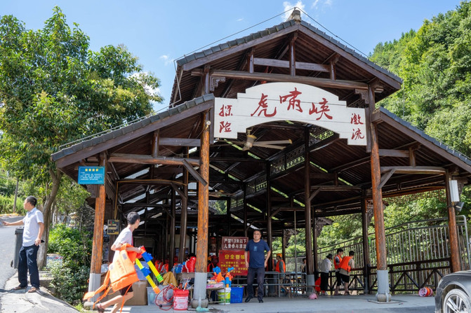 Situado en el municipio de Zhongshan, la provincia de Zhejiang, el rafting de Huxiao Gorge es uno de los lugares de rafting más famosos en la provincia de Zhejiang, y la emoción es el mayor punto brillante de Huxiao Gorge, y también es la razón principal por la que me reuní con mis amigos para venir aquí. Elija el casco de su color preferido, use el chaleco salvavidas y el casco, y puede ir al centro de transferencia de pasajeros al lado y esperar el autobús hasta la montaña.