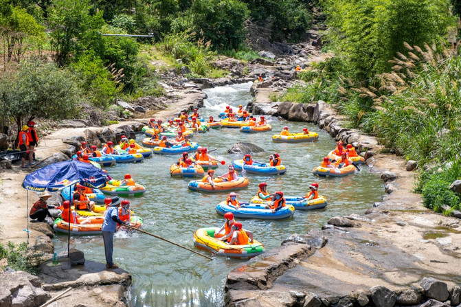 Hu Xiao Gorge Rapids Adventure, además de los toboganes increíblemente emocionantes, también habrá un área suave entre los toboganes, cuando el bote de goma llega al área suave, los turistas no solo pueden ajustar el cuerpo y la mente, sino que también hay un tiempo fresco en el agua que nos espera. Aquí, puede disfrutar de la diversión de las batallas de agua, ya sea conocido o no, puede divertirse con sus amigos en general.