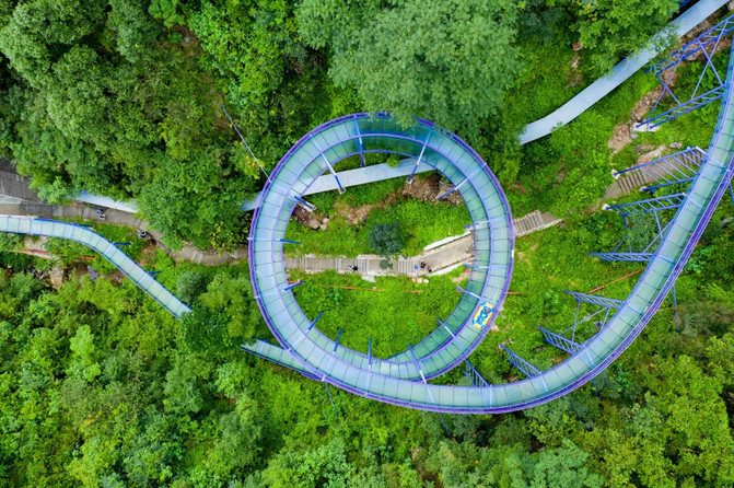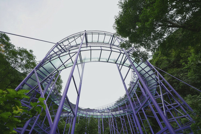 Si se puede pararse en una gran altura para mirar o usar fotografías aéreas de drones, se puede encontrar que la deriva de vidrio de gran altura de la Garganta del Dragón Zi es como un dragón oriental gigante que flota entre las montañas y los bosques del cielo, magnífico y deslumbrante.