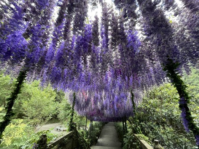 A través del paseo de wisteria, es el antiguo pueblo de Tianzi, es decir, el resort de Tianzi. Aquí, el paisaje idílico y el paisaje del hotel de vacaciones de salud son interesantes, y hay una sensación de visión de un lugar remoto.