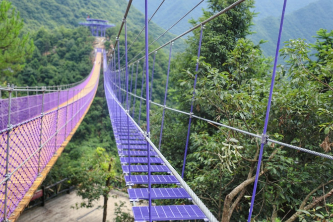 El largo puente de escaleras es como un paseo en el aire, y necesita valientes para atrevenirse a pisar en él. En cuanto a los pasos al lado del puente, se compone de escalones flotantes, sin un cierto valor, los colectores de belleza con miedo a las alturas realmente tienen que reunir coraje para vencer su coraje.