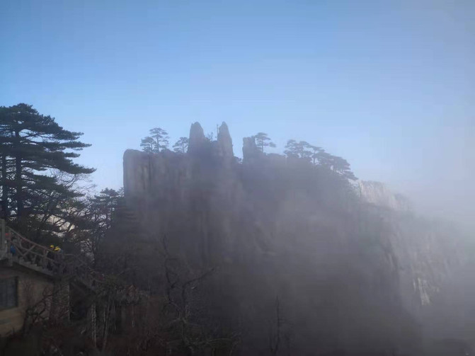 Lotus Peak, el pico más empinado de las montañas Huangshan, el invierno y el Gran Cañón del Mar de Oeste están cerrados.
