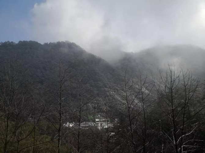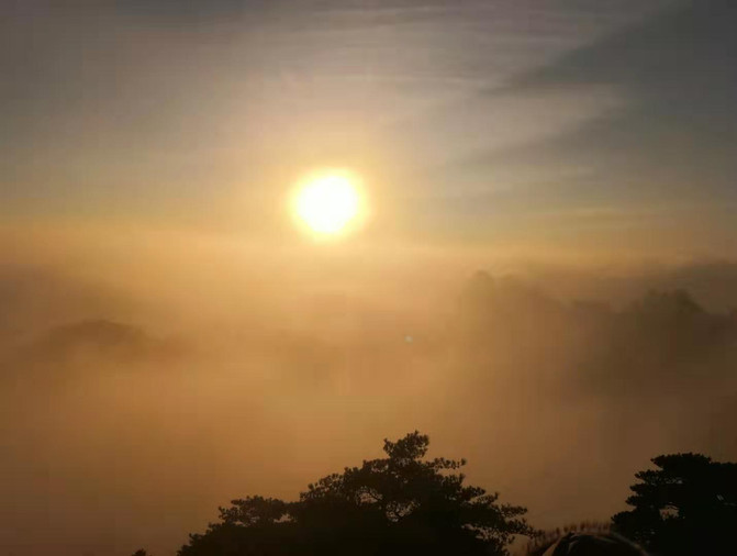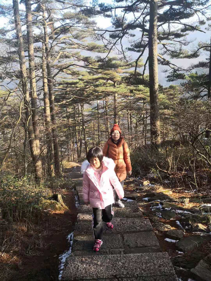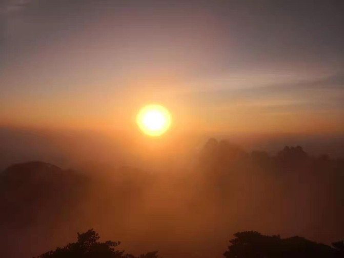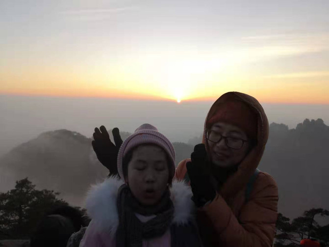Con el fin de cuidar de mí, una persona con disonancia del sueño, mi esposa e hijos apretaron una cama, y yo tenía una cama sola. De esta manera, o medio sueño a las cinco en punto, pensar en no dormir, vestir ordenadamente, además de la chaqueta de algodón preparado por el hotel, tomar la linterna, ir a ver el amanecer. Originalmente pensé que estaba solo, no esperaba, una vez que salió vi viejos y jóvenes, varias personas, siguieron a la gente corriendo hacia la montaña.