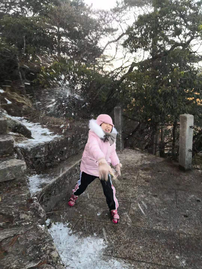 Hace demasiado frío en las montañas, espera la puesta de sol, juega bola de nieve con mi hija