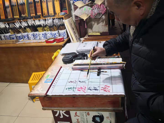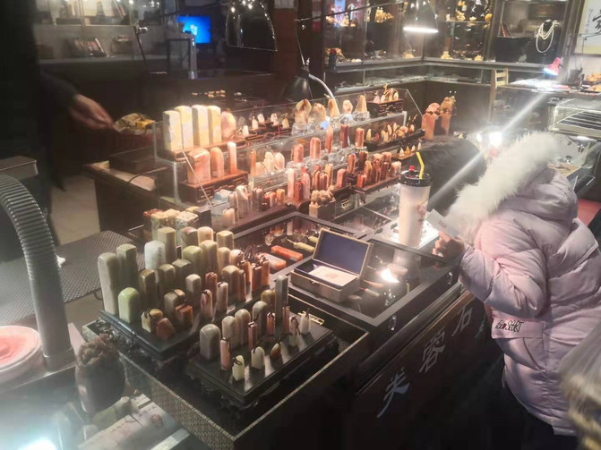 En la vieja calle hay muchas tiendas de escritorios y sellos tallados, y los propietarios de las tiendas están todos en una habilidad excepcional.
