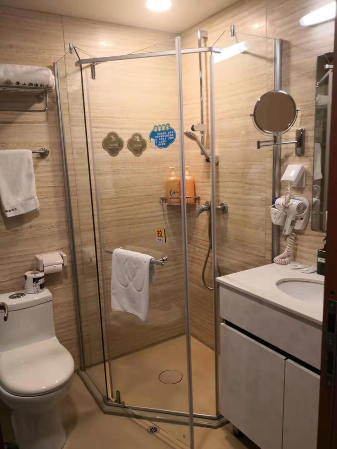 A las 3: 30 finalmente llegó al Hotel Xihai, que acaba de ser decorado. Las condiciones en la cima de la montaña deberían ser buenas. El calentador, el secador de aire y otras instalaciones están completas. División A, B dos pisos, A edificio es de alta calidad, el precio es más caro, debido a los dos años de la unidad no aumentó el salario, por lo que sólo puede vivir en el edificio B, dos camas de 1,1 metros, una familia apretada más saludable