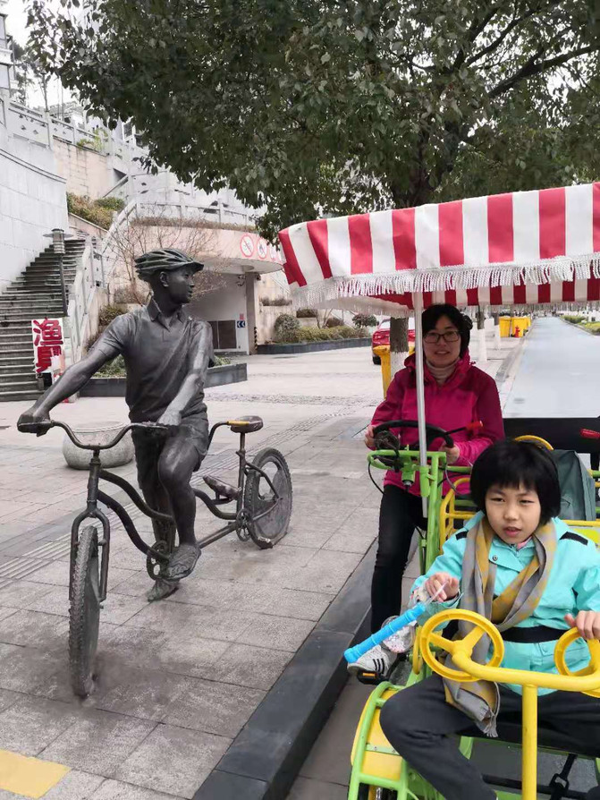 Originalmente tenía la intención de ir a una excursión de un día, pero más tarde mi hija propuso ir en bicicleta, lo que más sucedió. Alquilamos un coche en la puerta del hotel por 40 yuanes y montamos menos de 500 metros en el viaje de regreso, demasiado frío, demasiado lento y demasiado cansado.