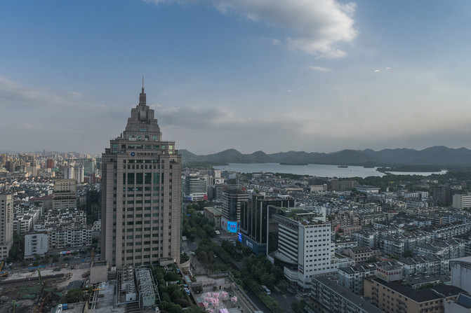 Las habitaciones del hotel tienen vistas al lago oeste y también tienen vistas a la plaza Wulin desde el jardín aéreo fuera del restaurante en el octavo piso. Puede ver que muchos edificios emblemáticos de Hangzhou también tienen una vista panorámica. La distancia de la Plaza Cultural del Lago Oeste, el Gran Canal Beijing-Hangzhou y la Plaza Wulin frente a nosotros se presentan ante nuestros ojos como una pintura.
