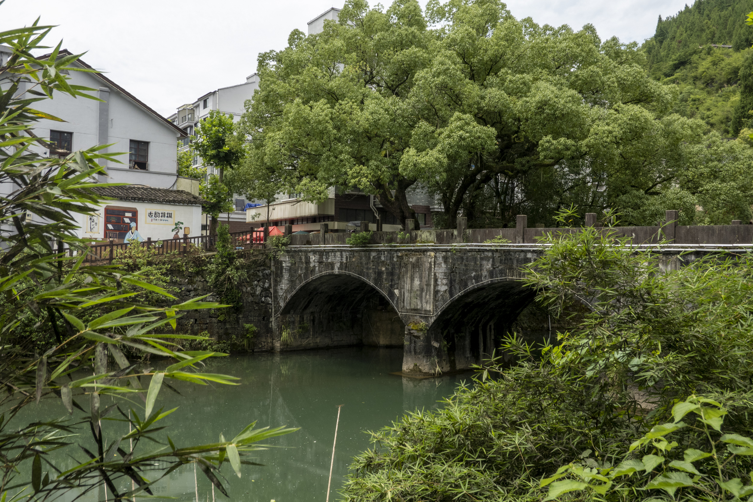 paraPueblo de YuzhenEn busca de un antiguo tiempo lento. El antiguo puente de piedra, los exuberantes árboles viejos y el verde del río, forman una suave imagen del pueblo acuático del sur del río.