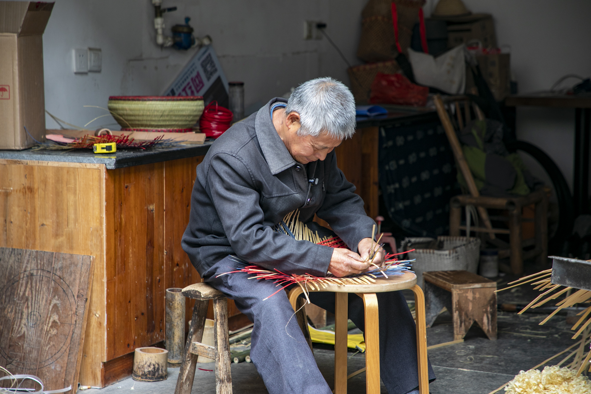 El viejo maestro de la tienda de bambú de Wenyuan Lion City habilmente tejió pequeños objetos, una barra de bambú, un ingenio, 60 años de práctica de un trabajo único. Dijo que cada pieza de bambú aquí tiene un alma, solo para las personas predestinadas.