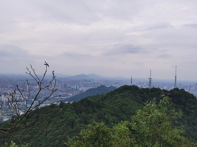 La montaña Tianzhu desciende a mitad de la montaña, pero la vista es repentinamente abierta: ahora está la aldea de Longjing, Shifeng, el lago oeste lejano, el río Qiantang... no lejos de la salida es Langdangling, cerca de la plantación de té de Longjing Shifeng Mountain en el lago oeste, gire a la derecha y vaya directamente a la montaña Wuyun; Después de sentarse y descansar un poco, gire a la izquierda en dirección al pabellón de Brahmin, siga el camino de montaña a través de la montaña Shimen, la montaña Chessboard, la montaña Tianma... Al norte de la montaña es San Tianzhu y el templo Xia Lingyin del pico norte, al sur es la montaña Wengjiashan y más lejos, el río Qiantang, el puente Zhijiang... Aunque la visibilidad del tiempo no es muy buena, todavía puede ver claramente el lago oeste y el pico sur circundante, la torre Leifeng, el pabellón de Wang, la torre Leifeng, la torre de Wu Shan...