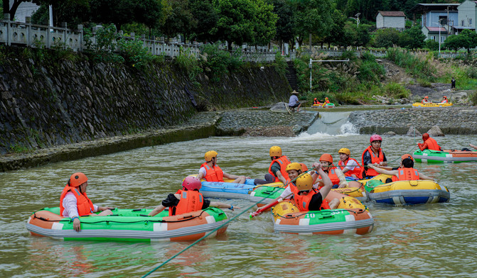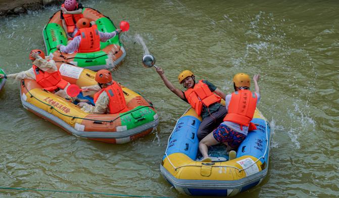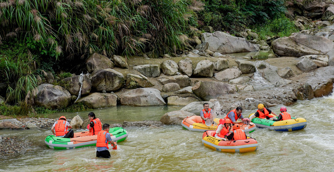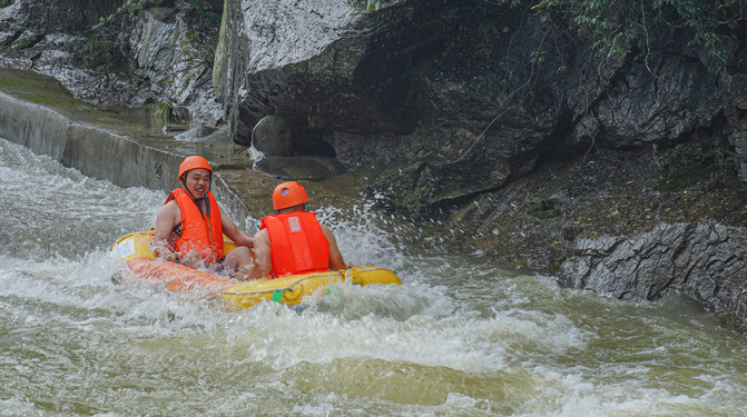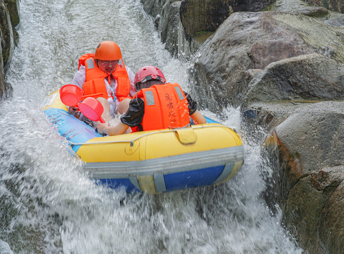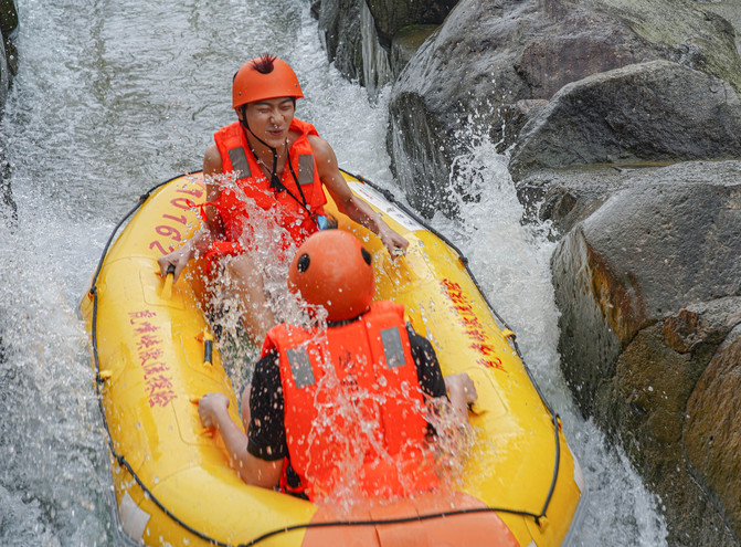 Los amigos nos recomiendan ir a Hu Xiao Gorge Rafting en el otro lado del lago de Jiangxi este año, diciendo que el agua es rápida, la cantidad de agua es grande, todo el proceso es estimulante, y no es el que termina en unos minutos, todo el proceso toma aproximadamente más de una hora, pero también puede luchar una batalla de agua, que cumple completamente con lo que queremos, así que los requisitos.