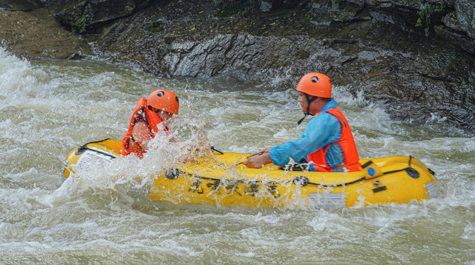 Después de aprender que Hu Xiao Gorge tiene 10 kilómetros de distancia, y la caída vertical es de 260 metros. No es de extrañar que el agua sea tan turbulenta. Probablemente conté que había alrededor de 9 rampas particularmente emocionantes en todo el curso del rafting, que era realmente muy emocionante, y cuando se sentó en el kayak, fue emocionante y emocionante. El bote se desliza rápidamente hacia el arroyo salpicando capas de "oladas", no es de extrañar que haya una "ola del arroyo" aquí, de vez en cuando se escuche el grito de un amigo.