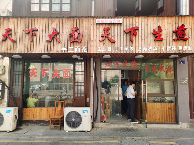 Esta vez en Hangzhou, no viví junto al lago oeste, eligió en el área residencial, el desayuno en el camino al lado eligió la popularidad de la familia en el mundo grande, 0.8 yuanes de pan frito crudo y 0.8 yuanes de pasta de olla, este precio también es demasiado consciente de la señora!