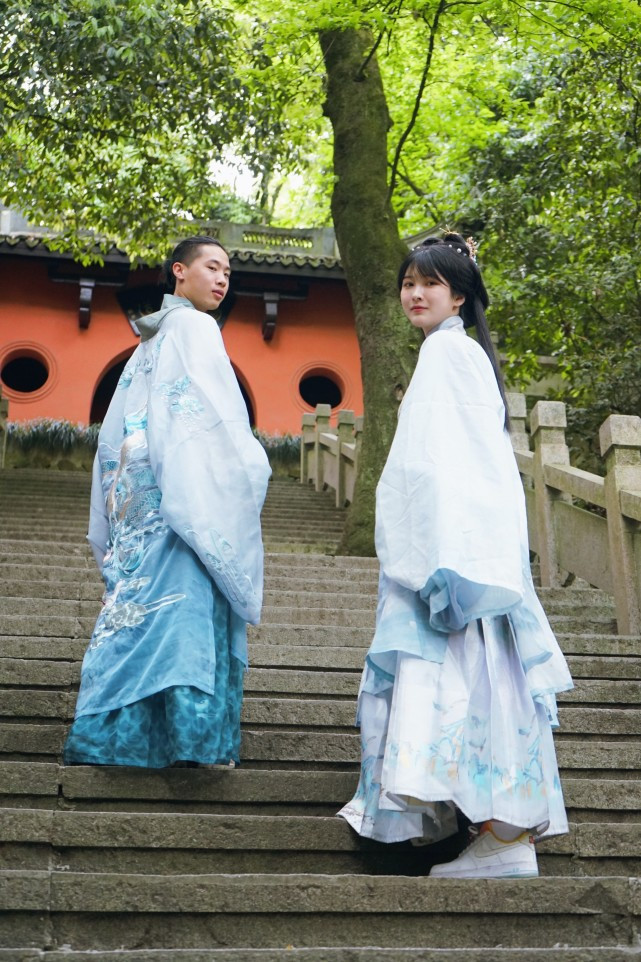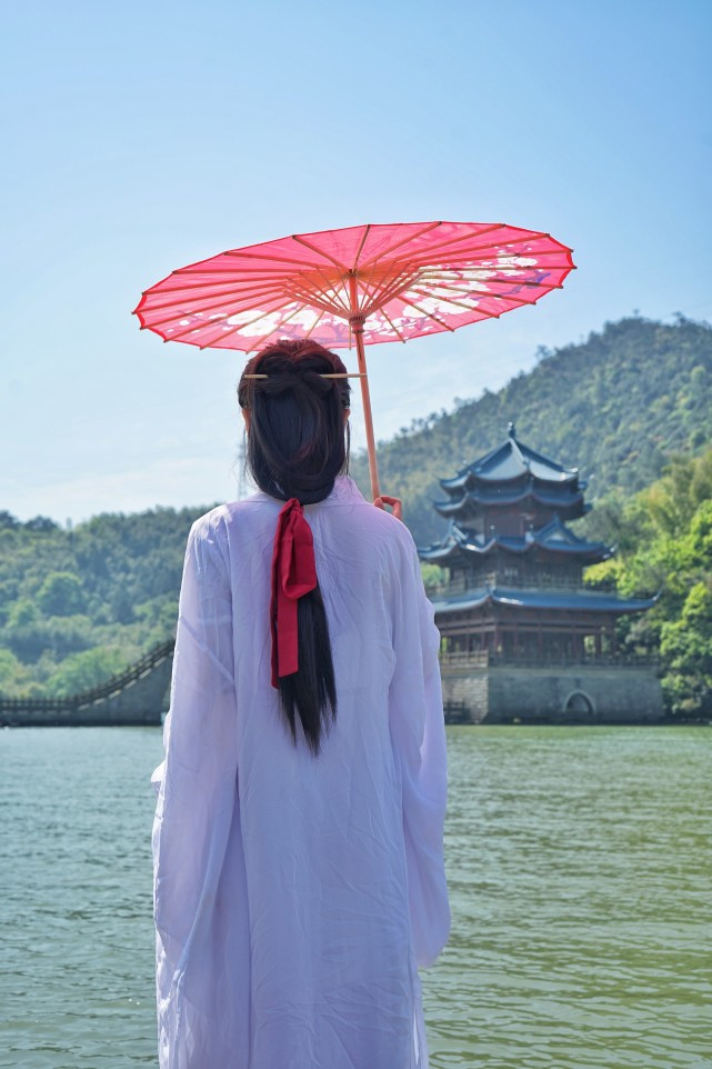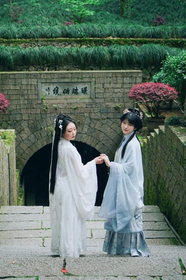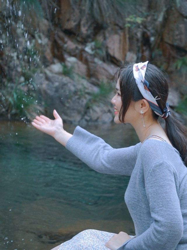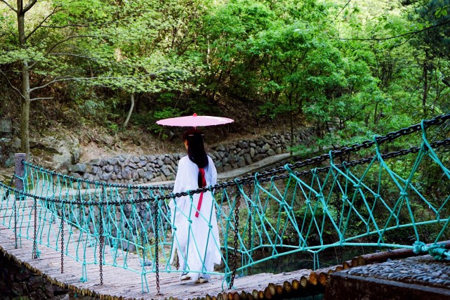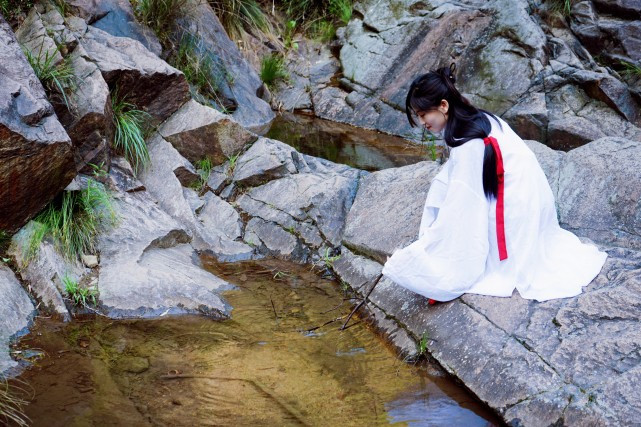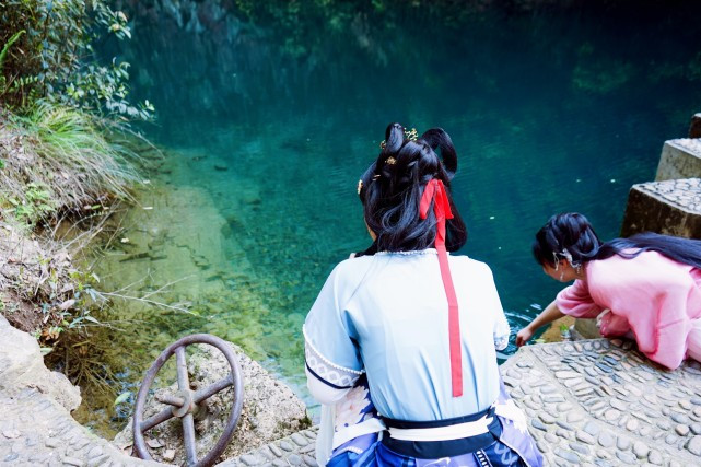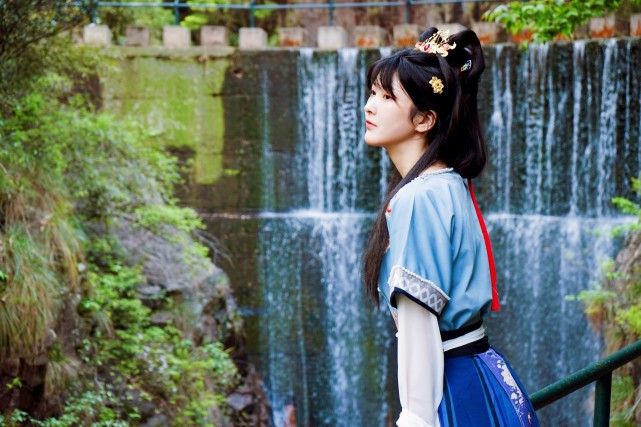 Aquí, los arroyos, las cascadas, se ven por todas partes. Bajo el agua corriente, ponerse el traje chino, usted es el hada más hermosa aquí.