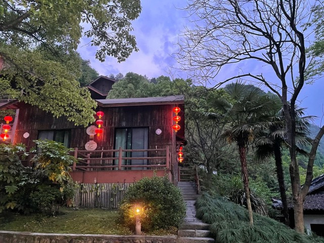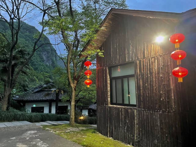La cabaña de la linterna roja se encuentra en el lugar escénico de la casa de la abuela de la linterna roja de Liu Yan, construida contra la montaña, al lado del arroyo Tianmu que fluye lentamente, no lejos del país de las hadas de Yaolin. El complejo está lleno de chaletas unifamiliares, cubiertas con techos de abeto, complementadas con una cadena de linternas rojas adornadas, especialmente cuando cae la noche, es muy hermoso.