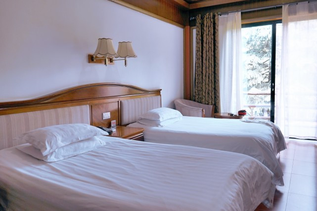 La habitación está decorada con el estándar de un hotel turístico de tres estrellas, TV a color, aire acondicionado, instalaciones sanitarias.