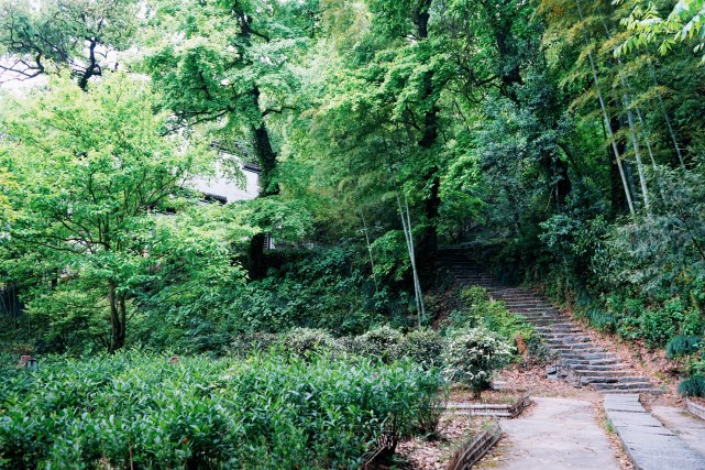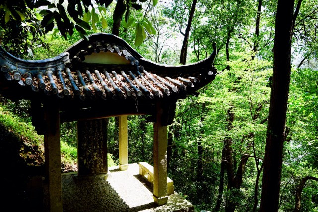 La montaña Tongjun es de 60 metros de altura, con un pico abrupto, un estanque plano y azul, un bosque exuberante y una sombra de bambú cultivado.