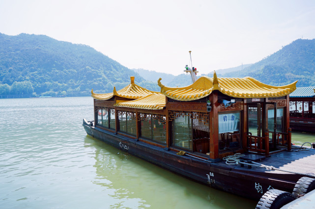 Después de llegar a Yan Zi Ling, también necesita tomar un crucero para llegar a Diaotai de nuevo, sentado en el crucero puede ver el hermoso paisaje del río Fuchun.