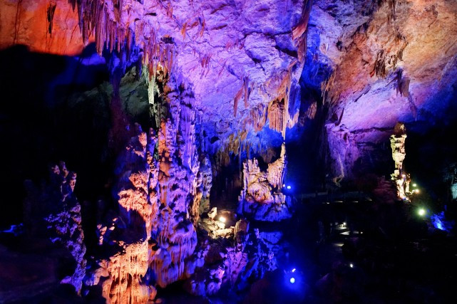 Un total de aproximadamente 1 kilómetro, la cueva se mantiene a unos 18 grados durante todo el año. Con su contorno de cuevas sinuosas y magnífico paisaje rocoso, es elogiado como "la corona de las cuevas en todo el país", y el pintor Ye Xuan Yu lo elogió como "raras en China y raras en el mundo".