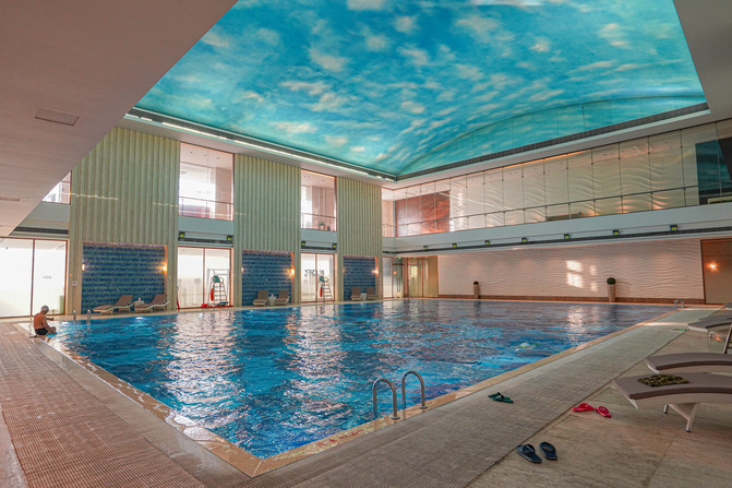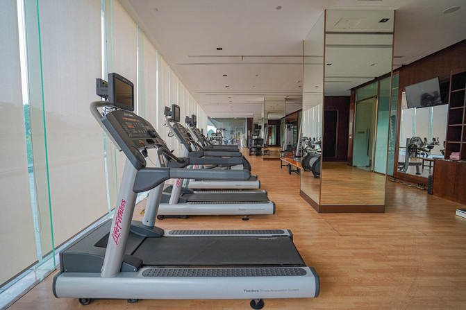 El hotel también tiene una gran piscina y gimnasio, como lo hice recientemente para hacer ejercicio después de una buena comida sin sentirme culpable.