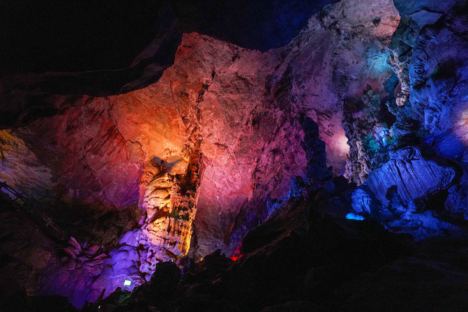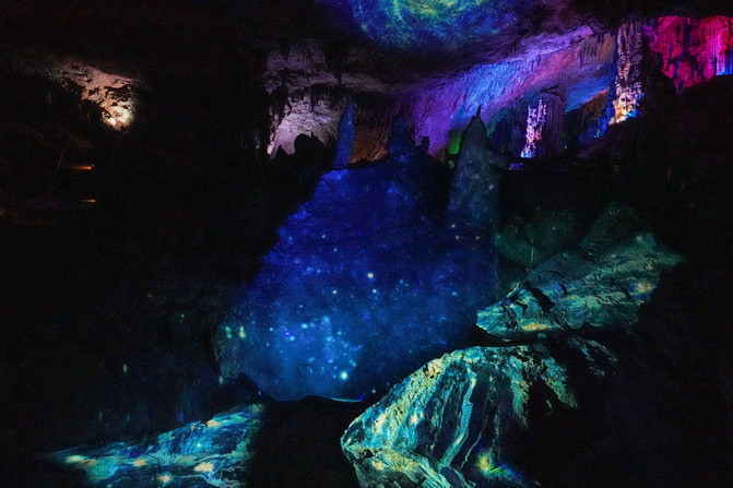 No muy lejos de la entrada hay un impresionante espectáculo de luces 3D, con luces avanzadas de alta tecnología combinadas con cuevas cársticas naturales, la tecnología moderna se combina con el paisaje natural, con un sabor psicodélico único.