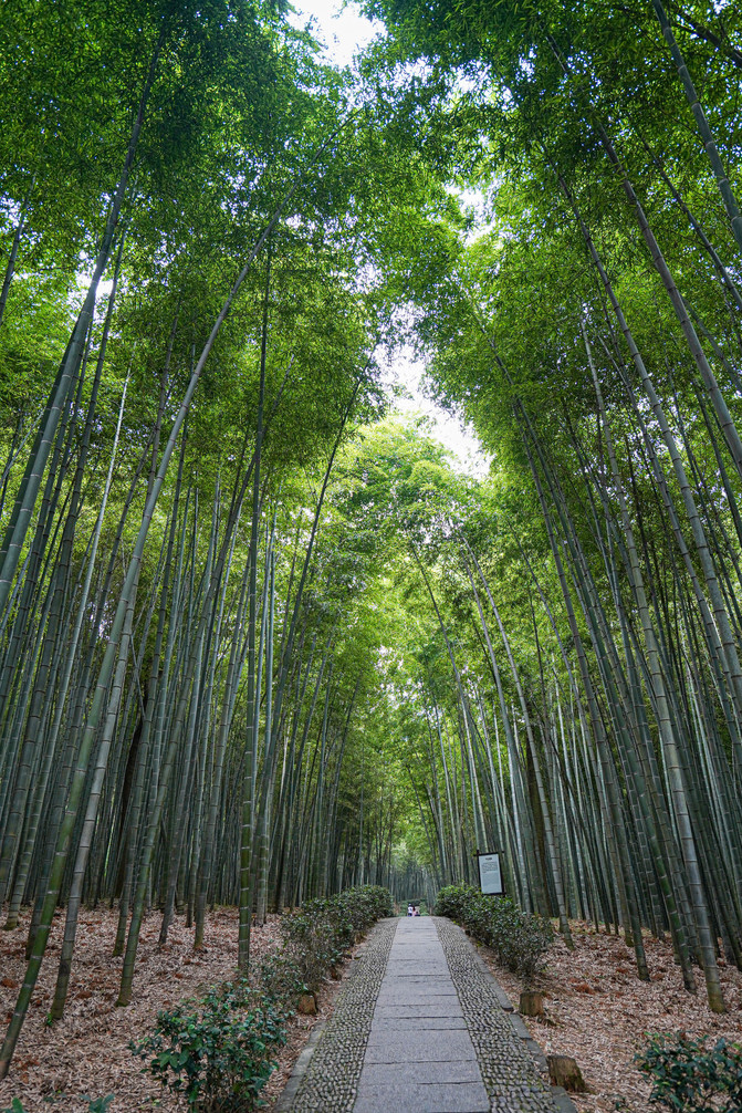 En el lugar escénico, primero es un pequeño bosque de bambú. El mar de bambú de esta temporada es súper hermoso, muy bueno para la película, y tiene un encanto único del bosque de bambú de Jiangnan.