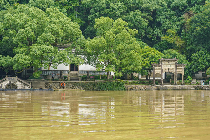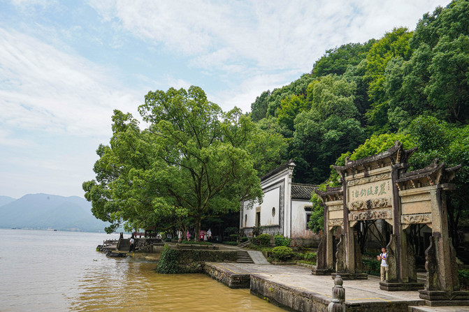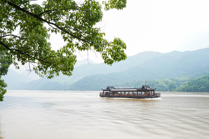Después de entrar en la puerta del lugar escénico, al lado del centro de visitantes está el muelle para tomar el barco. El barco de crucero dará una vuelta al río Fuchun. Cuando el clima es bueno, puede disfrutar del hermoso paisaje del río Fuchun. Siéntase en el rollo de pinturas de paisaje. Frente a usted está un hermoso "Fuchun Mountain Residence".