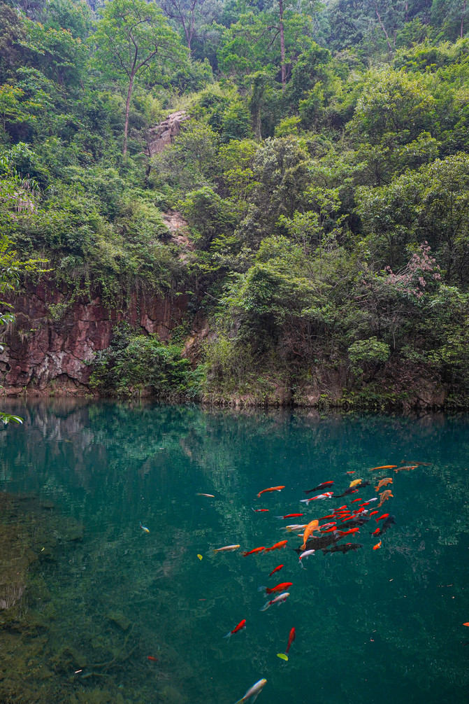 Caminó a lo largo del camino y llegó a la piscina de cielo en la cima de la montaña. El agua del estanque aquí es tan clara que casi se puede ver el fondo, la superficie del agua es el reflejo de los árboles verdes, hay un poco de Jiuzhaigou.