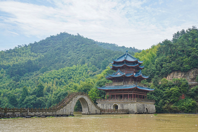 La segunda parada del crucero es la Bahía de Longmen en el sur de Jiangnan. Hay entretenimiento acuático, restauración y otros proyectos. El alto puente de arco junto con un pabellón es muy poético desde el crucero.
