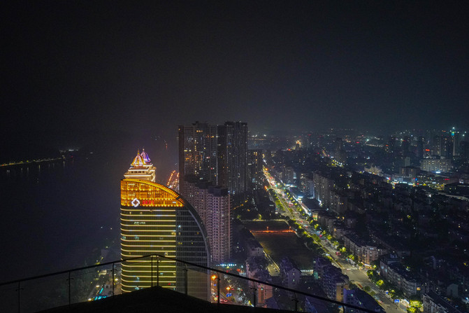 Después de comer, también fue a la azotea para ver la vista nocturna de la ciudad de Liaoyu, que es el lugar más alto en el vecindario. La vista nocturna de la ciudad de Liaoyu es una vista panorámica, y es muy cómodo soplar una brisa fresca.