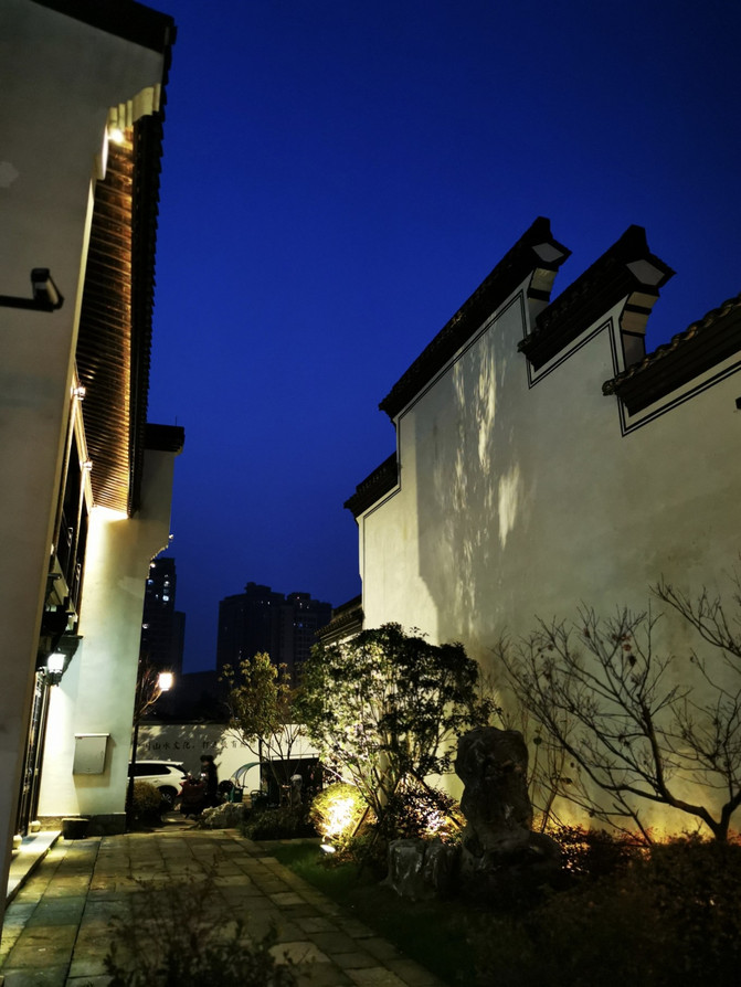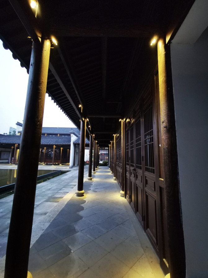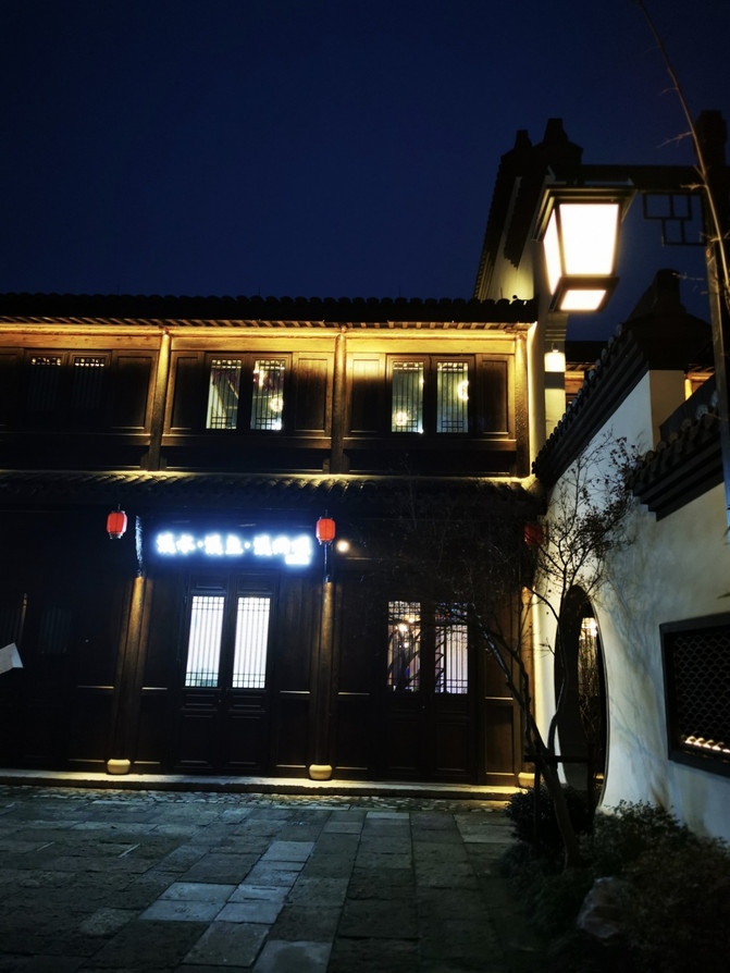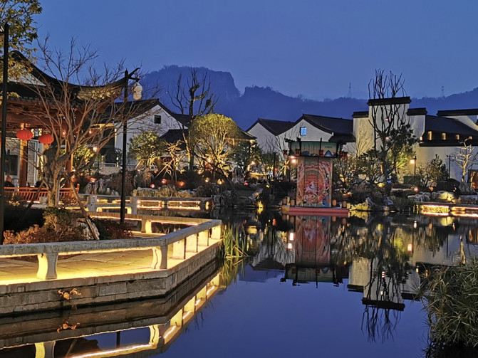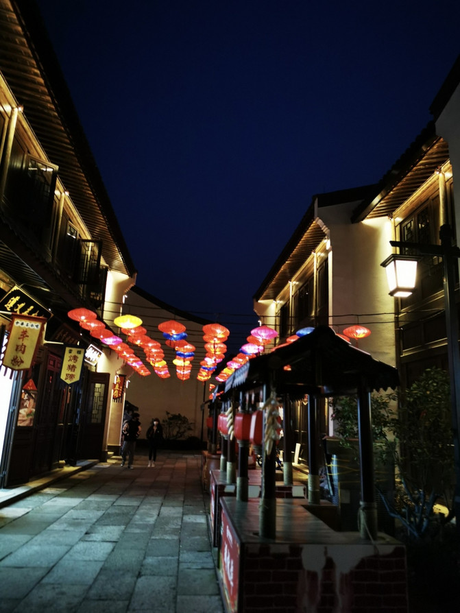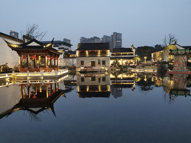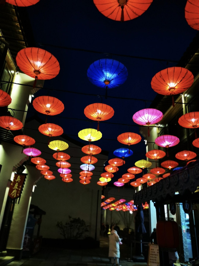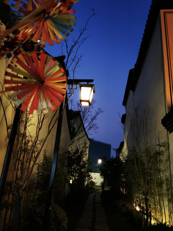 🌟🌟🌟 Bajo el efecto de las luces nocturnas, la vieja calle de Oolonglin logra un efecto brillante más perfecto. Bajo las orillas del río, los edificios tradicionales de madera de paredes blancas y azulejos grises se reflejan en el agua.