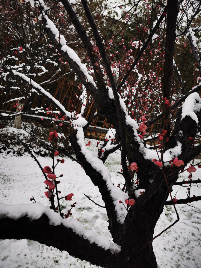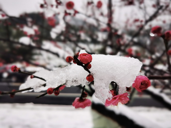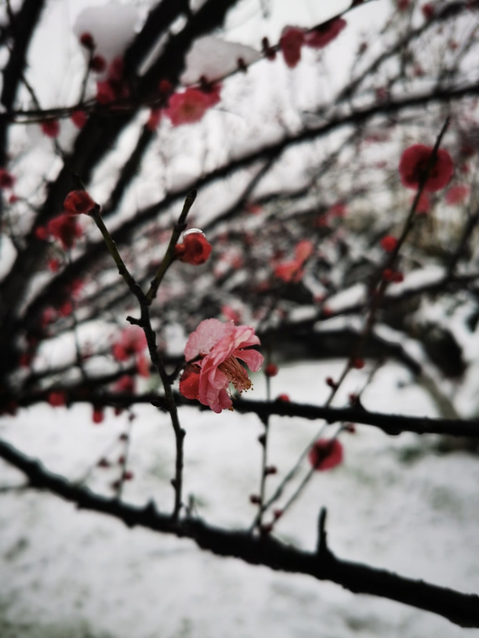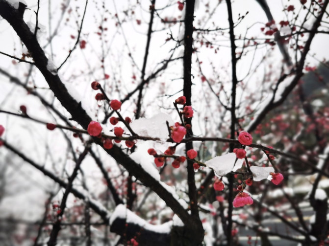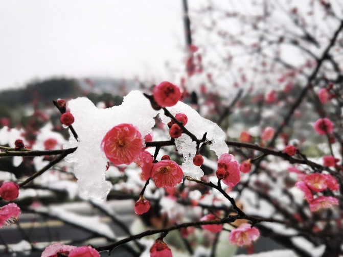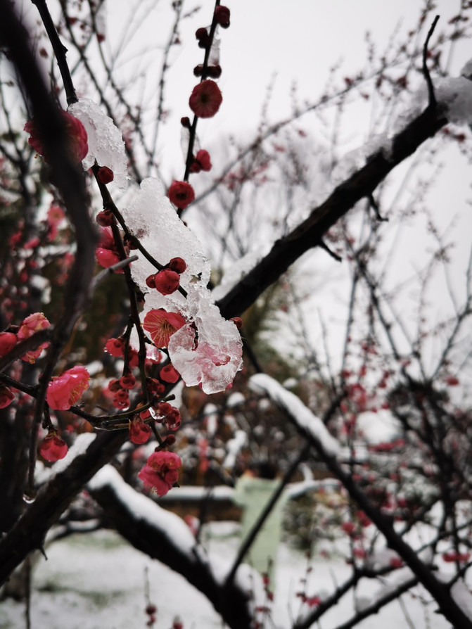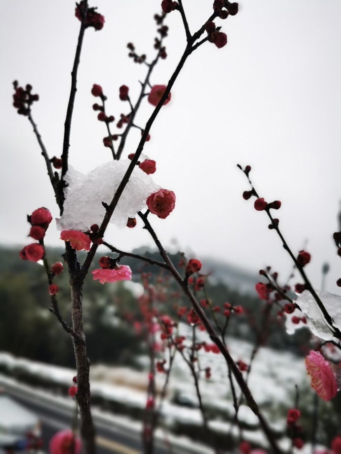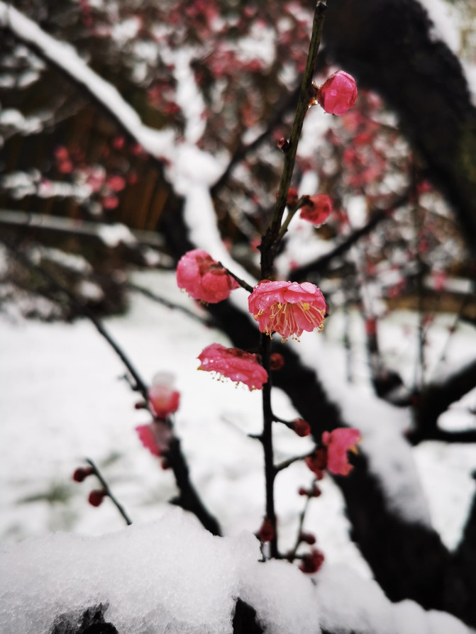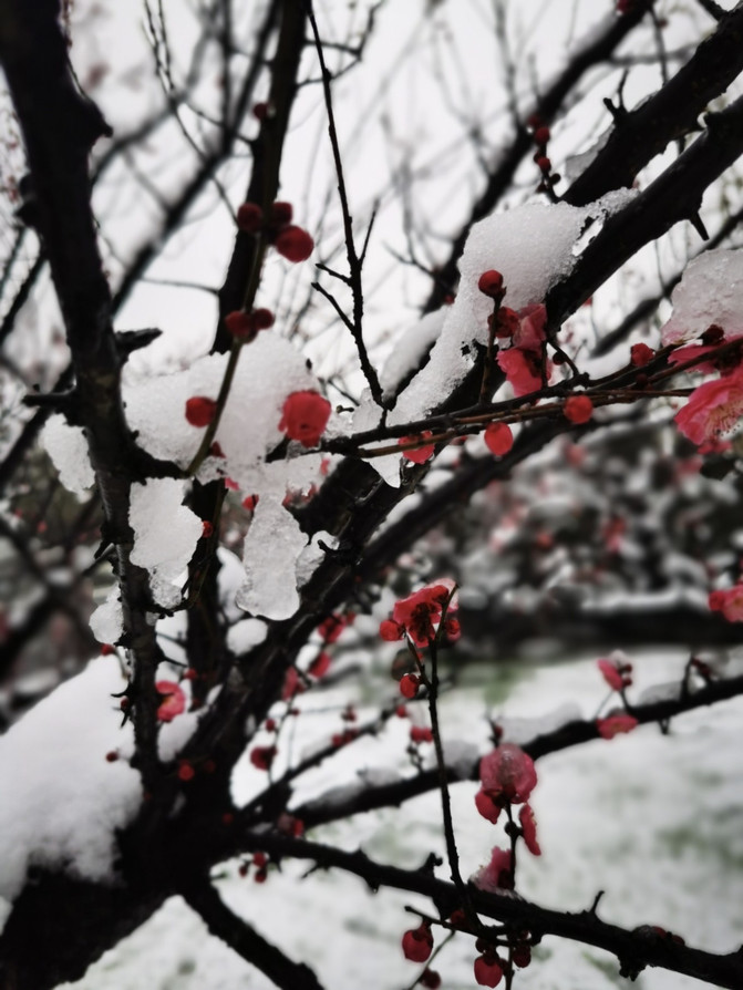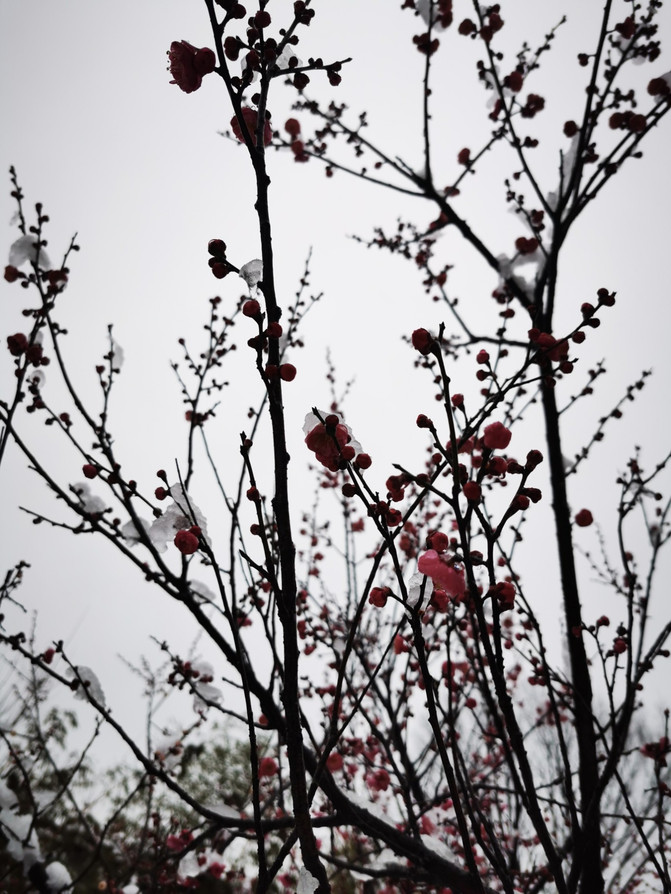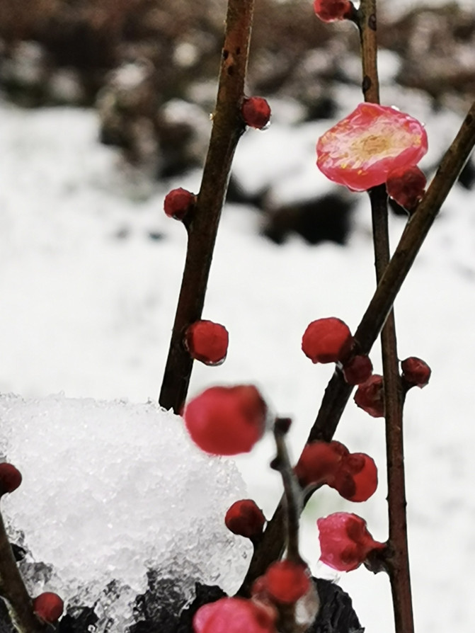 Un poco de flores de ciruela 👏👏, rebanadas de rojo brillante🌸🌸