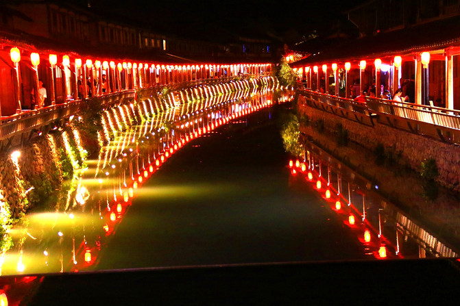 Vista nocturna de Wenzhou-Yongjia - Nanxijiang-Yantou Town-Lishui Ancient Street