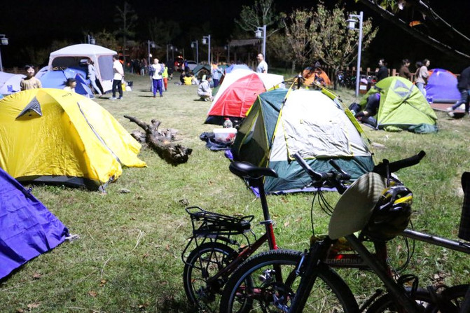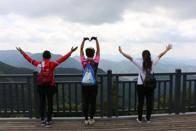 Las vacaciones del Día Nacional y un grupo de amigos de ciclismo llegaron a la montaña Anying en Fuyang para participar en las actividades del equipo de ciclismo