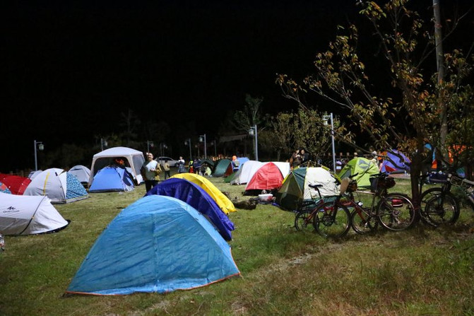 Tiendas de campaña en la plataforma