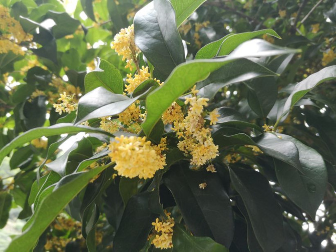 Las montañas son interminables, la fragancia de las flores de osmanthus única, una lluvia de osmanthus dorado.