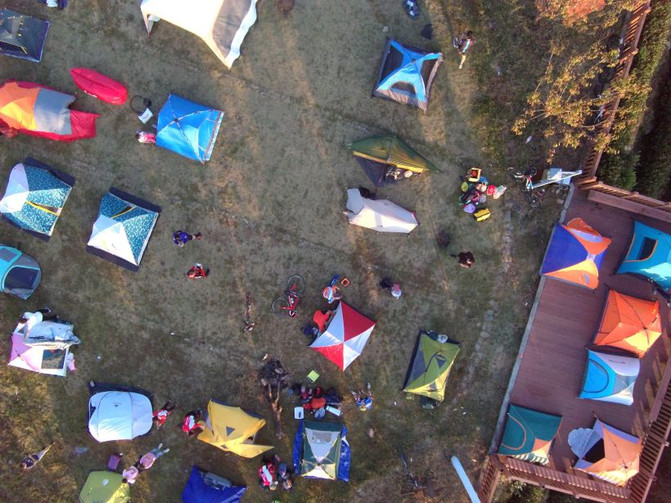 Todo tipo de tiendas de campaña brillan a la vista
