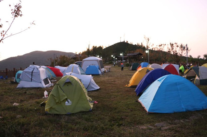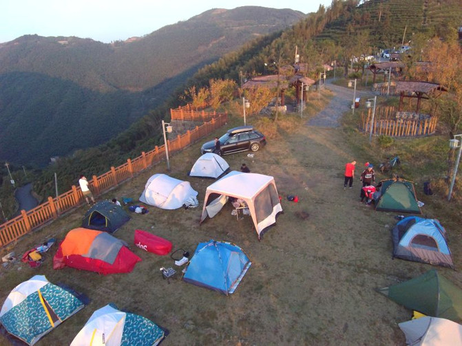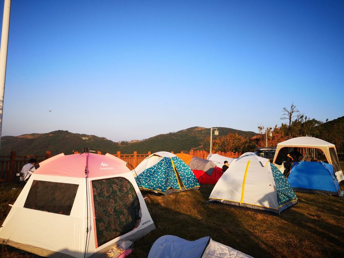 Área de fuego de carbón, zona de descanso, perfectas para un campamento de barbacoa. Bajo el sol atardecido, las montañas continuas hacen que la gente pierda el olvido en el hermoso paisaje.