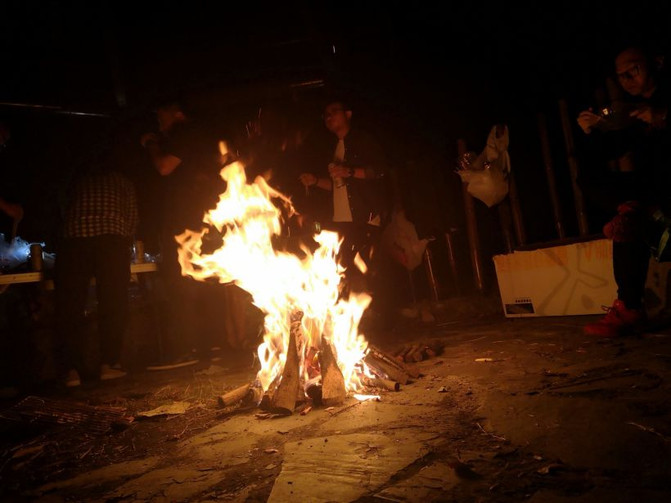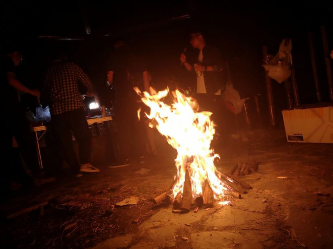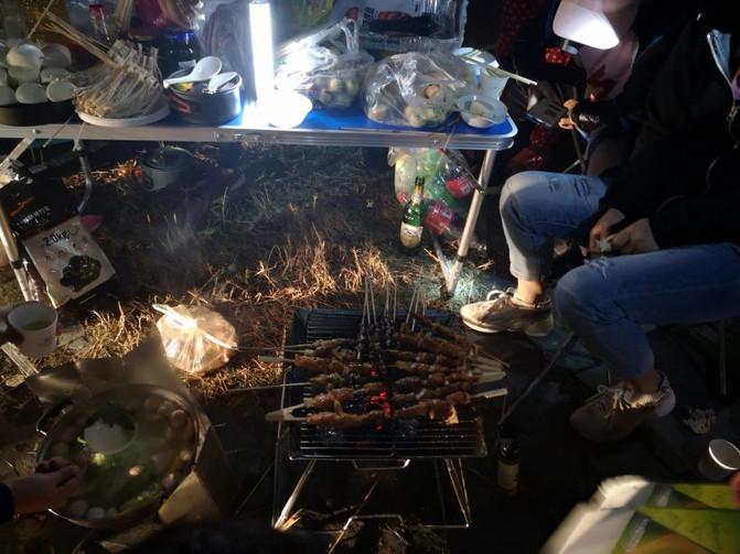 La música de la noche ha llevado a la barbacoa del campamento a la cima.