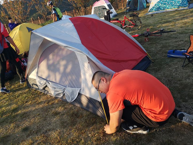 Ayudándonos unos a otros a construir tiendas.