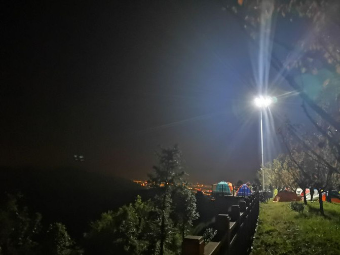 Hay una luz en el cielo sobre el campamento que no se apaga hasta las 12 de la noche.